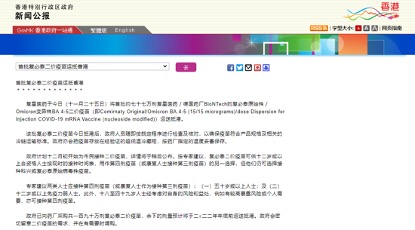 復(fù)星醫(yī)藥方面表示,復(fù)必泰二價疫苗可供12歲或以上人士作第四劑加強針選擇,康復(fù)人士可用作第三劑疫苗接種。根據(jù)香港特區(qū)政府官方又一信息稱,香港市民可于11月27日起可預(yù)約接種,12月1日正式開打復(fù)必泰二價疫苗。